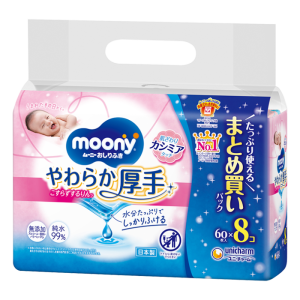 Moony drėgnos servetėlės yra specialiai sukurtos švelnios kūdikių odos priežiūrai nuo pat jų pirmųjų gyvenimo dienų. Servetėles galima naudoti nuolatos – keičiant sauskelnes, valant odą ar atliekant kitas higienos procedūras. Šios drėgnos servetėlės nedirgina odos, nes jose nėra alkoholio ir kvapiųjų medžiagų. Pakuotėje yra dangtelis su lipduku, kurį galima atidaryti ir uždaryti lengvai, viena ranka, todėl servetėles lengva išimti! Ant pakuotės yra „pranešimų linija“, rodanti pakuotėje likusių servetėlių kiekį.